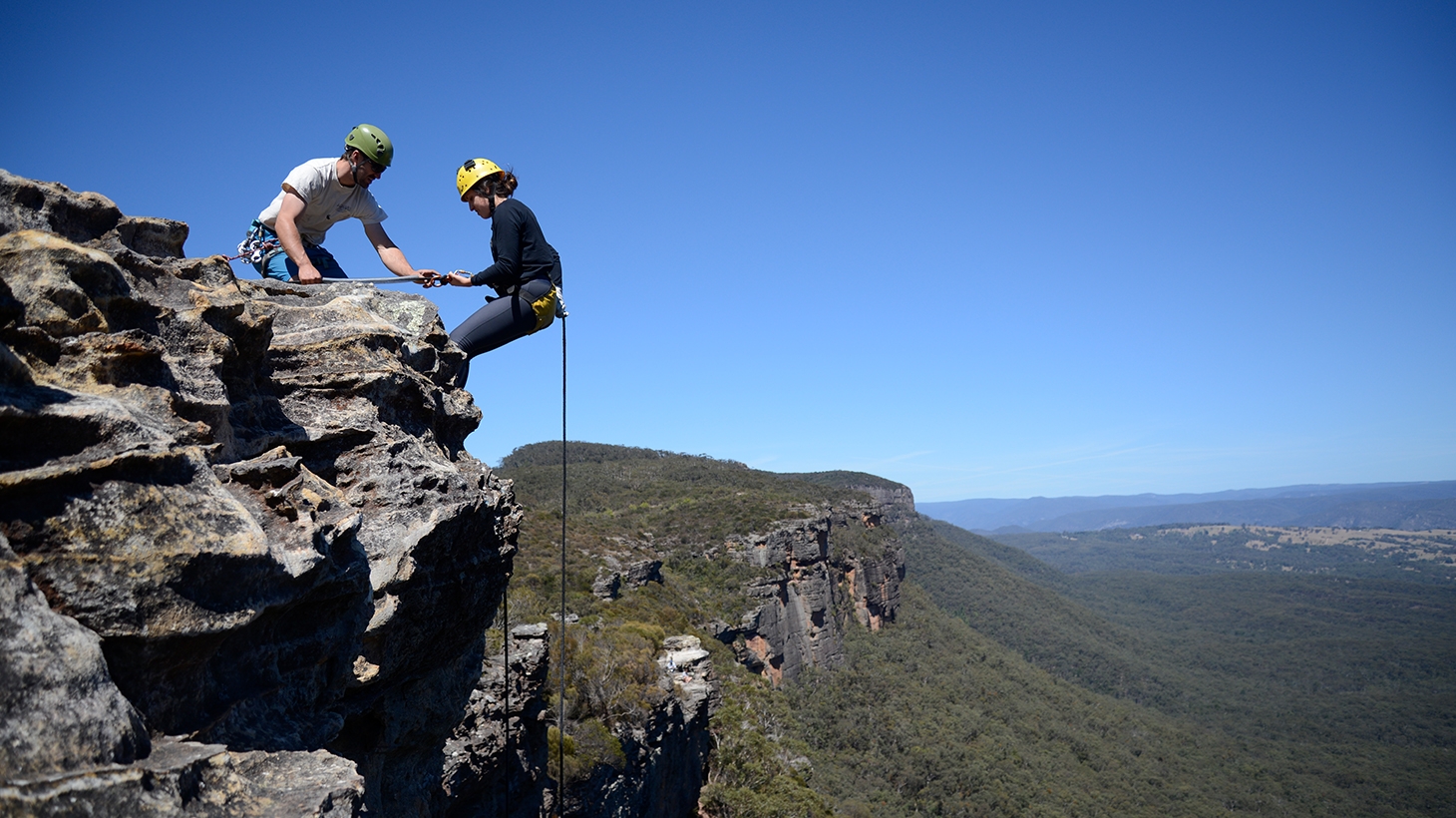 Abseiling (or rappelling) is a simple method of descending ropes that gets you back to the ground quickly.